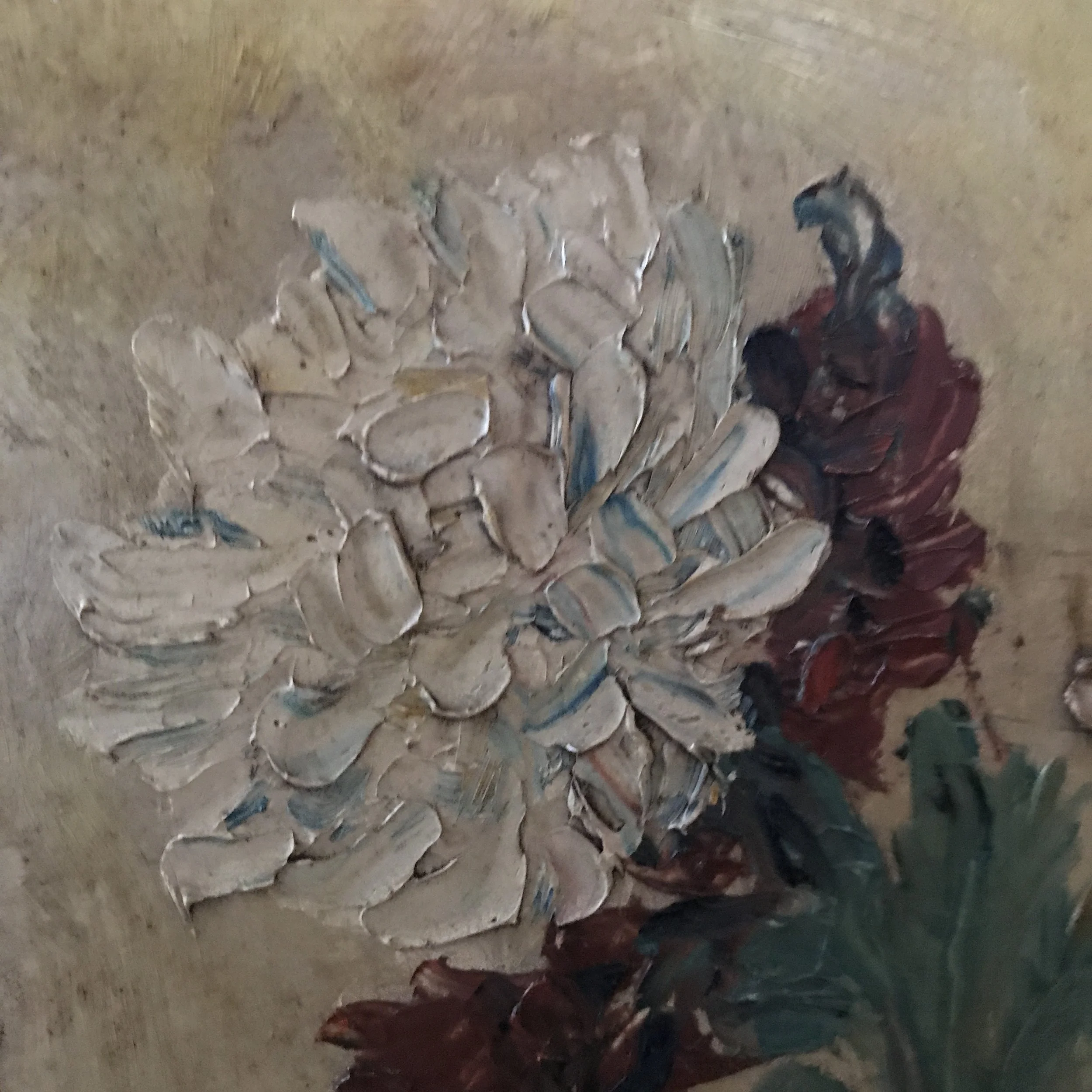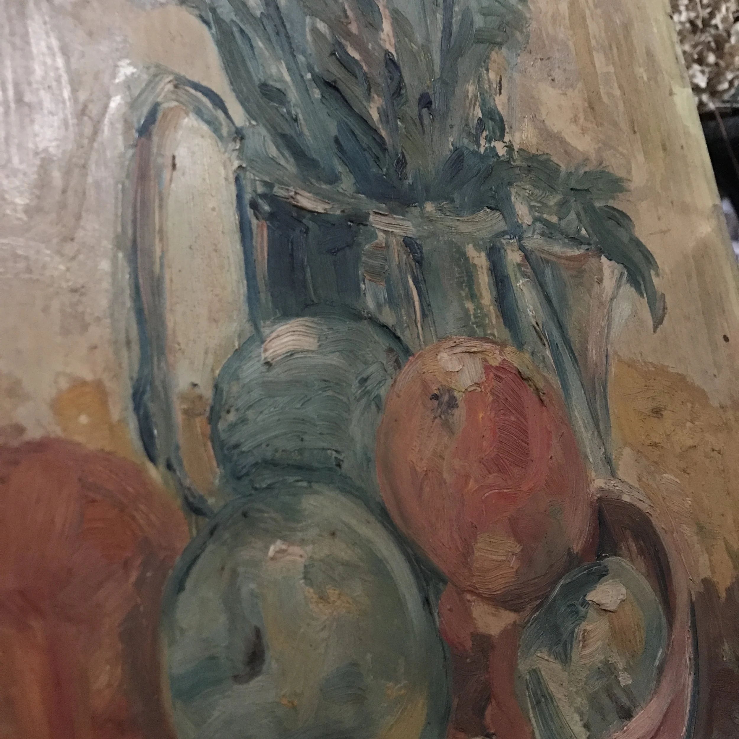 Botanical Art › Vintage Jug of Chrysanthemums with Fruit Image 1 of 7 Image 2 of 7 Image 3 of 7 Image 4 of 7 Image 5 of 7 Image 6 of 7 Image 7 of 7 Vintage Jug of Chrysanthemums with Fruit NZ$395.00 A beautifully textural vintage oil on board.Gorgeous colours with thick strokes. Unsigned.H. 50 x W. 38 cmIA18/4 Add To Cart Added! A beautifully textural vintage oil on board.Gorgeous colours with thick strokes. Unsigned.H. 50 x W. 38 cmIA18/4