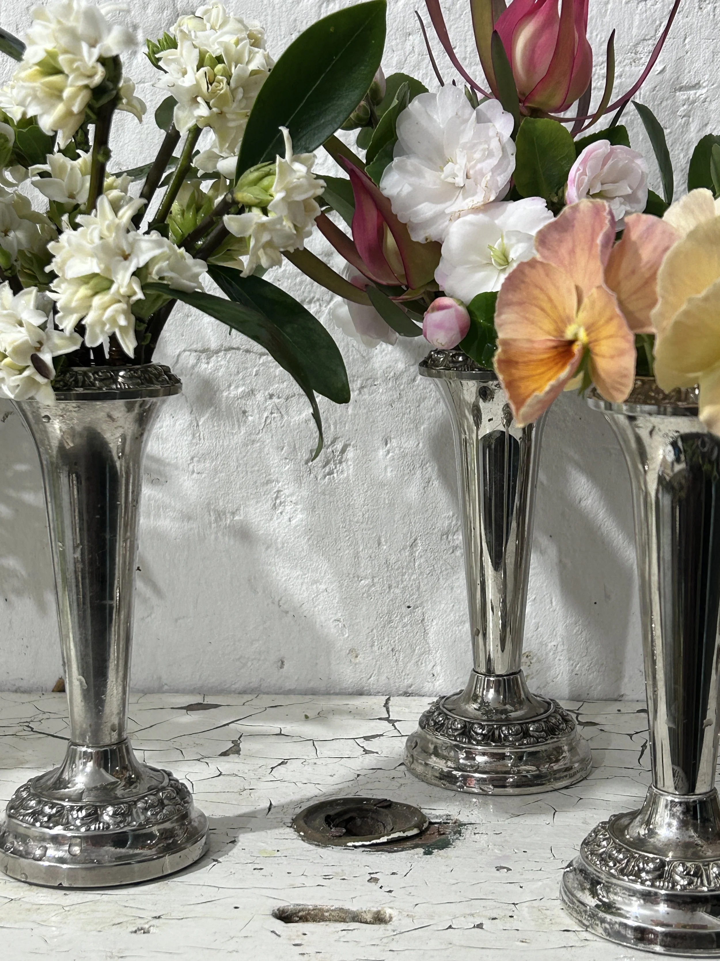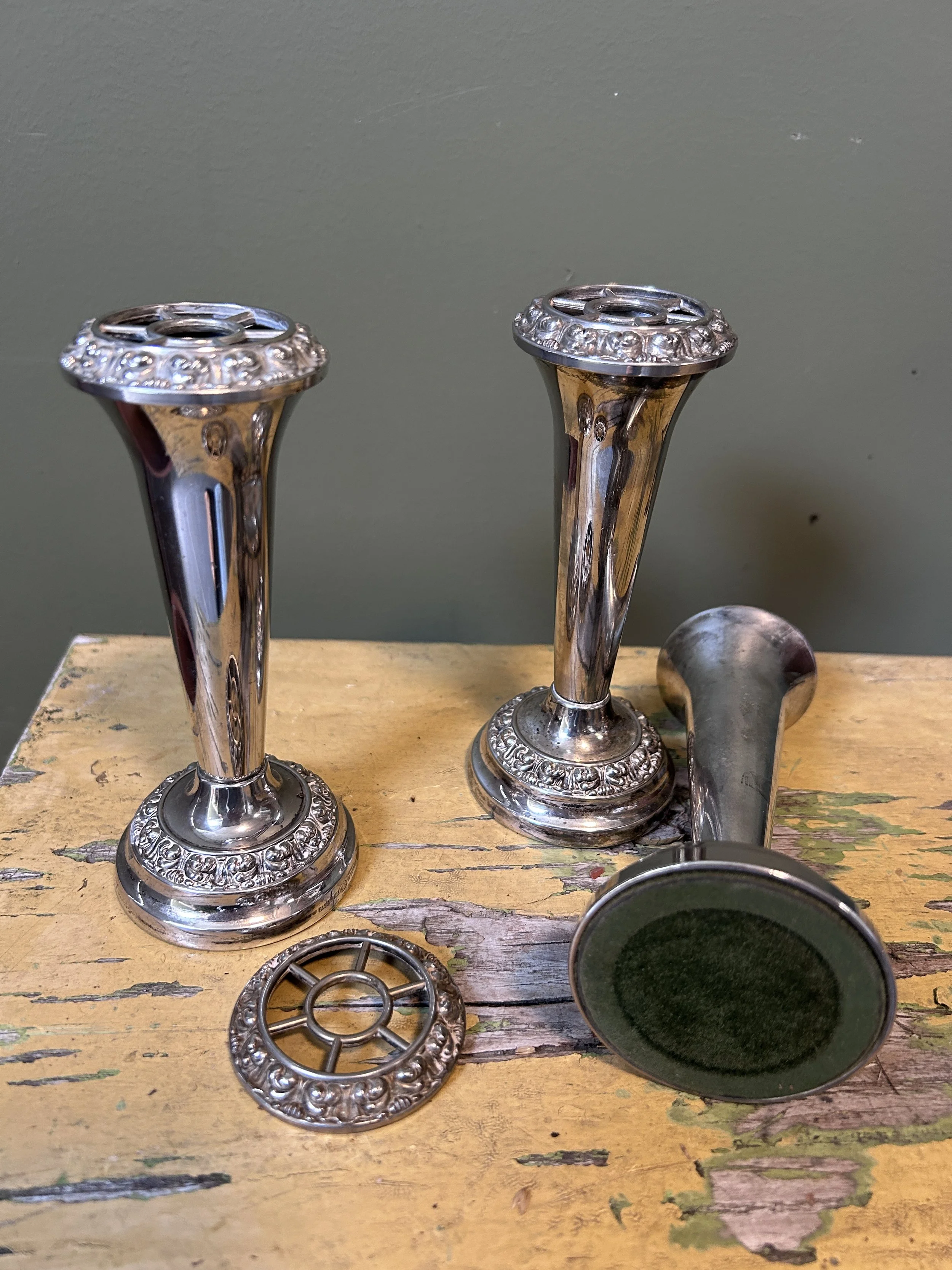 Vases SOLD - Pair of German Orvit Art Nouveau Pewter Spill Vases NZ$0.00 SOLD - Vintage Handblown Amber Glass Bud Vase NZ$0.00 Vintage Vase with Speckle Finish and Embossed Fruit NZ$45.00 Unique Antique Brass Urn with Wooden Handles NZ$140.00 Vintage Arts and Crafts Solid Copper Bud Vase NZ$175.00 Pink Hexagonal Vintage Sylvac Mantle Vase NZ$35.00 Set of Three Vintage Ianthe Silver Plate Tapered Posy Vases with Grill NZ$65.00 Vintage Joesph Sankey 3 Copper Jug with Crocodile Pattern NZ$145.00 Three Vintage Cobalt Blue Glass Milk of Magnesia Bottle USA NZ$40.00 Two Vintage 1930 Art Deco Shorter and Son Ceramic Vases NZ$125.00 Antique Salt Glazed Chemist/Wax Bottles NZ$28.00 Vintage Sylvac Circular Flower Trough / Posy Ring NZ$40.00 Antique Cast Iron Vase/Jardiniere NZ$275.00 Vintage Crown Devon 'Dogwood' Jug with Pale Pink Inside NZ$48.00 Vintage Amber Glass Rose Bowl with Frog NZ$65.00